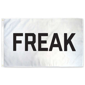 āļø The Design: We simply the word "Freak" on a flag. Black text on a white flag. I don't know what else you were expecting for a "Freak" flag...
