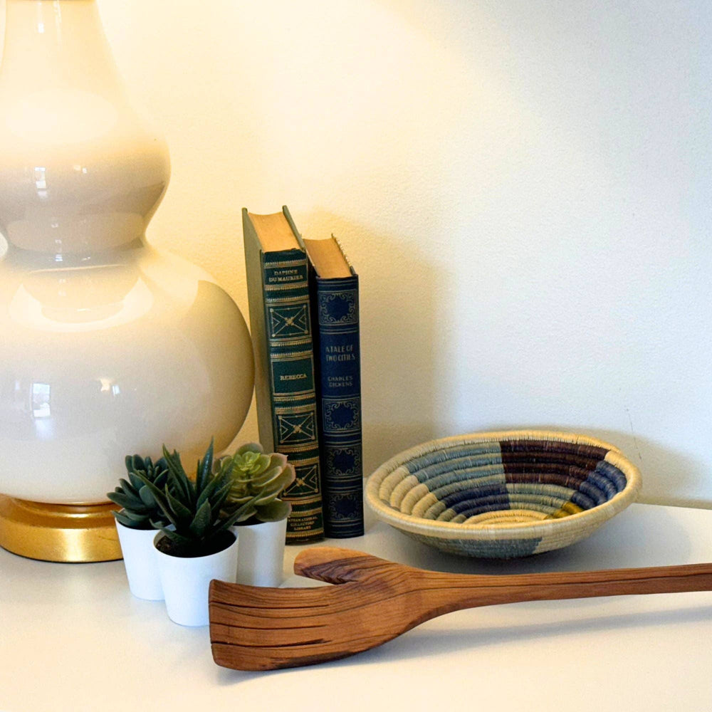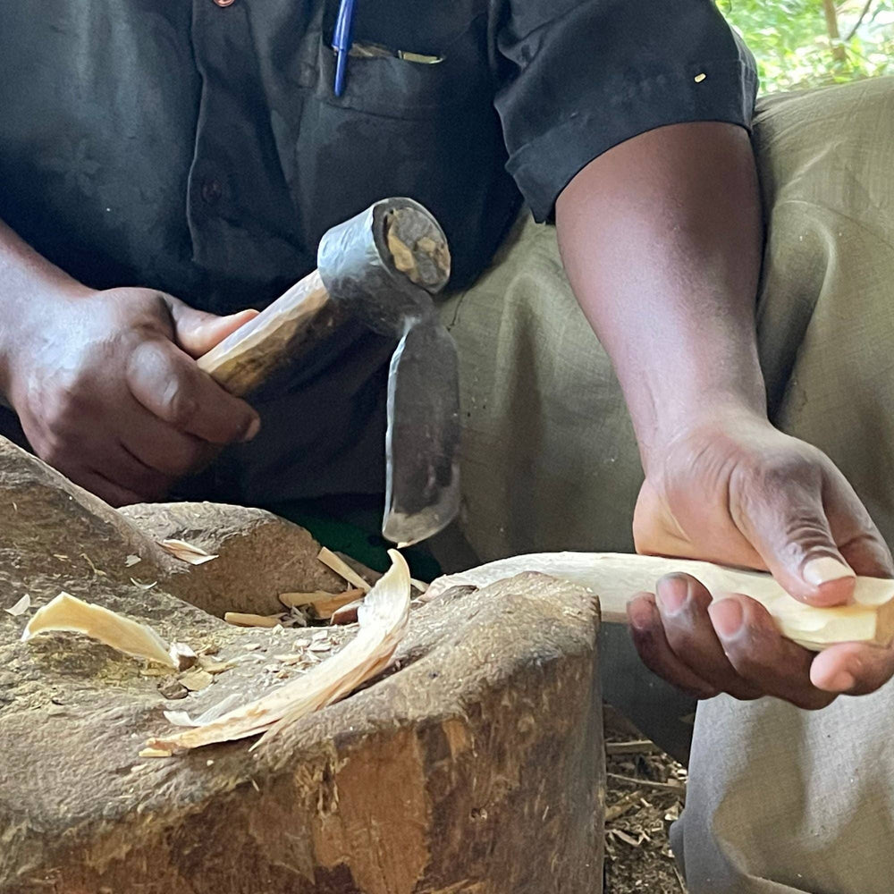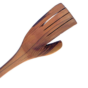 Artfully carved from a single piece of wild olive wood using simple hand tools, this back scratcher is a great giftable item. Artisans carve a detailed hand that serves as the perfect back scratcher! Fun piece to display on a table or bookcase -- sure to be a conversation starter.