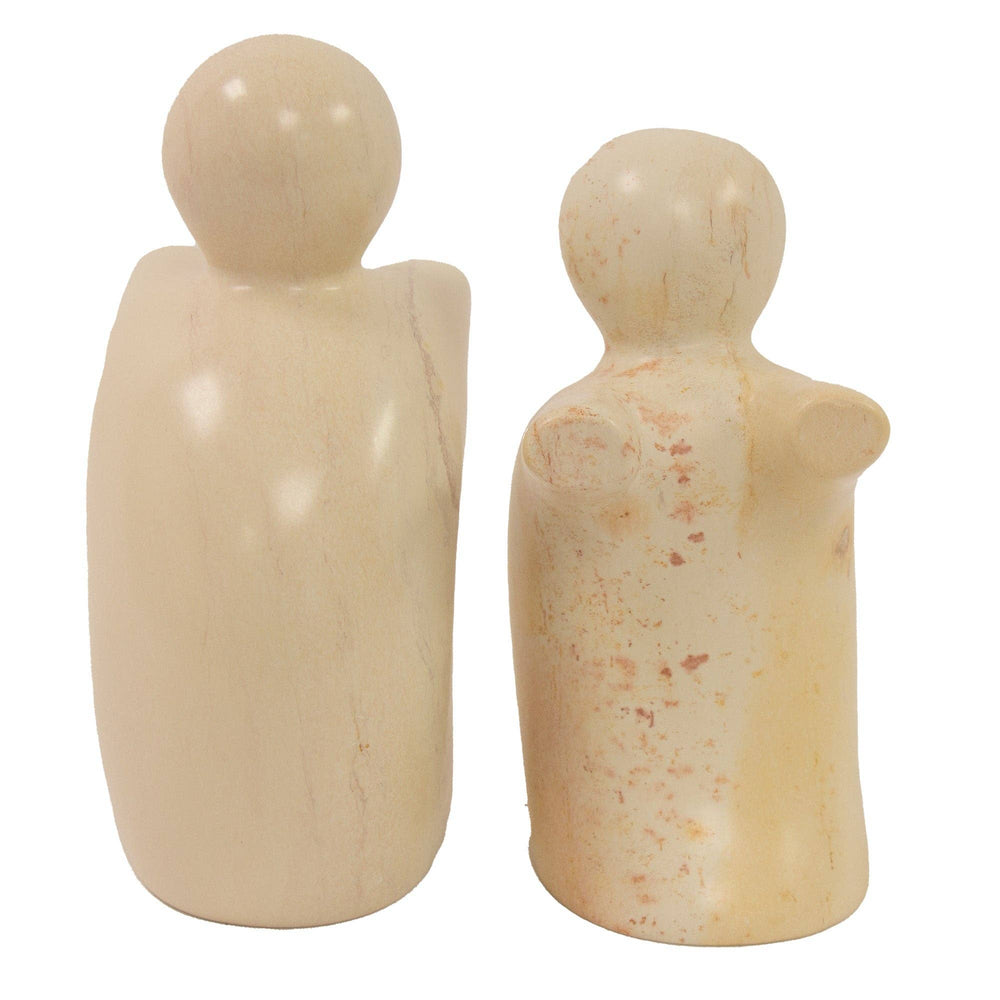 Each bookend is hand-carved from a single piece of natural soapstone and is a beautiful, abstract sculptures. The simple designs depict a person on each end, holding up the weight of the books. These are substantial and great for heavy books. A true work of art and great ethical gift.