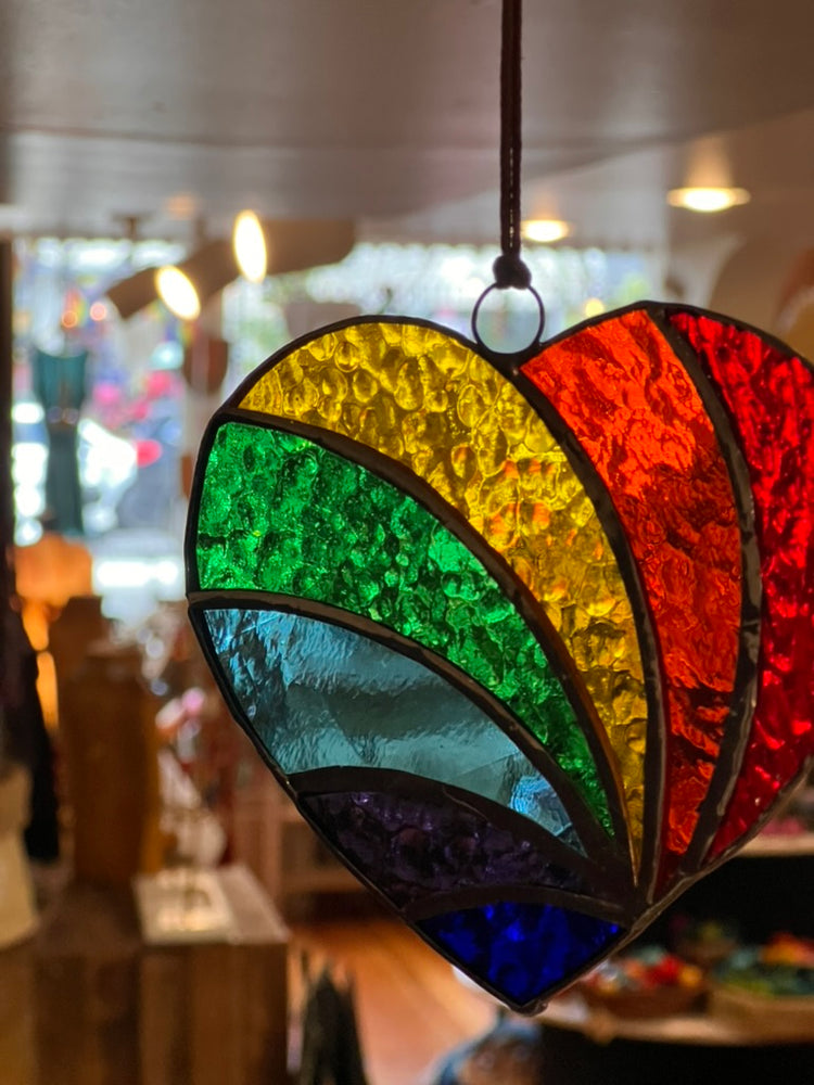 Beautiful windowpane glass suncatcher -- hang it in your window for Pride and all year round!